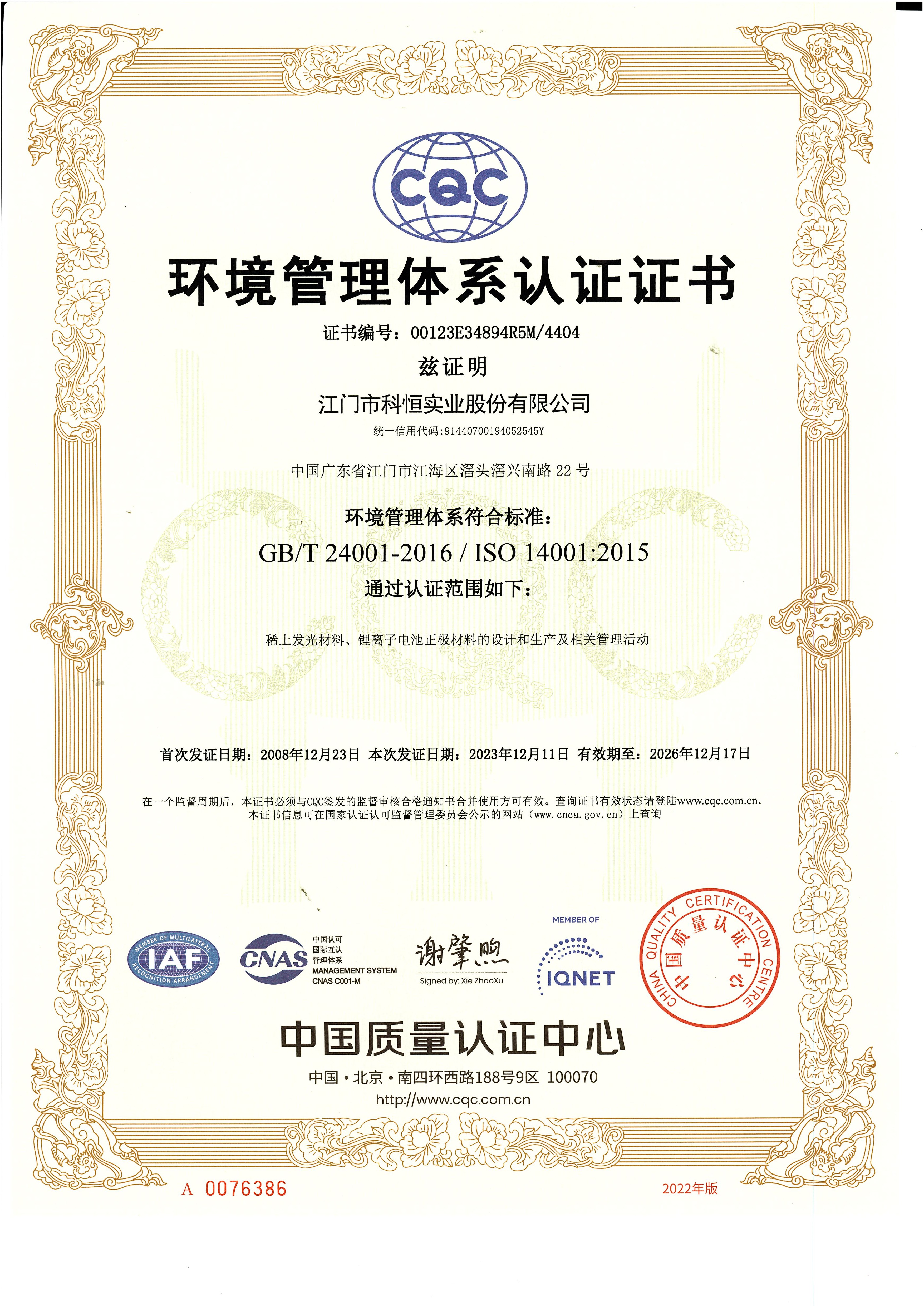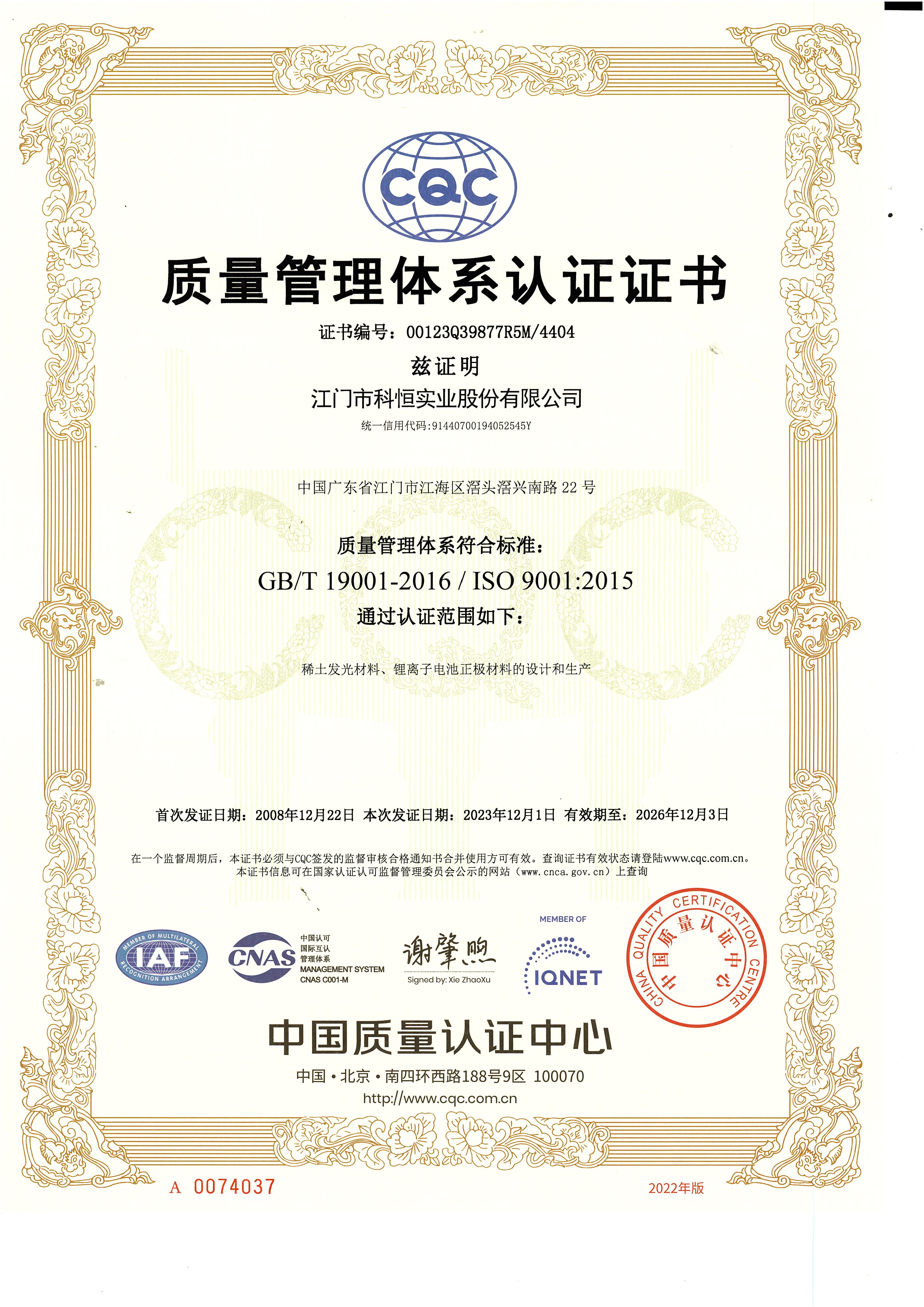 科恒堅持“科技卓越、永恒追求、質(zhì)量第一、客戶至上”的質(zhì)量方針,設(shè)立各級質(zhì)量控制體系,保證產(chǎn)品質(zhì)量。公司先后通過了ISO9001質(zhì)量管理體系認(rèn)證和ISO14001環(huán)境管理體系認(rèn)證。公司以滿足客戶需求為宗旨,以卓越的科技成果、完善的制造過程,制造一流的產(chǎn)品、增值的服務(wù)、共享的價值,讓客戶滿意。